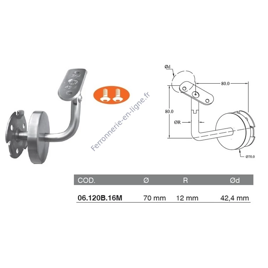 Fixation de la main courante Avec vis M5, produit inclus